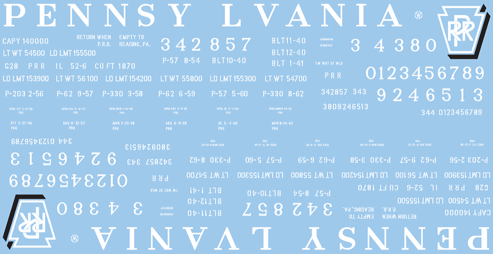 The Pennsy built 1,900 52’6″ drop end gondolas in 1940-1941 and assigned them to class G28. They had wood floors, proprietary welded underframes and sides, and Dreadnaught drop ends. The decal artwork shown above is for kit K129.2 with shadow keystone lettering from June, 1954 onward.
